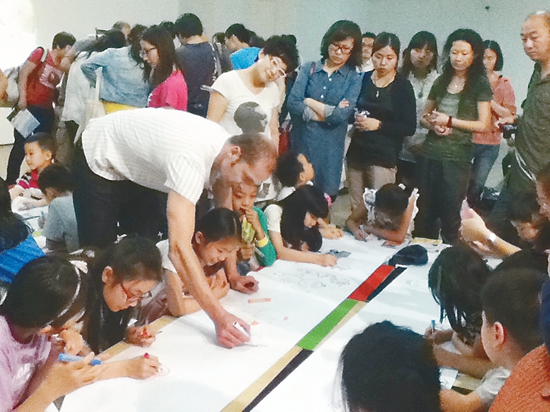 克里斯蒂安·艾利施在活动现场指导孩子们作画 邵 杰 摄