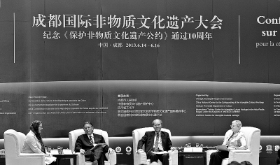 为纪念《保护非物质文化遗产公约》(以下简称“《公约》”)通过10周年,2013年6月14日至16日,成都国际非物质文化遗产大会在中国四川省成都市举行。大会邀请了曾经在制定《公约》的过程中发挥过重要作用的专家和近年来积极参与履约工作的各界人士等300余位专家参会。与会人员对《公约》通过十年来所取得的成就进行了积极的回顾,就《公约》面临的挑战、机遇及未来发展方向进行了广泛和深入的探讨。