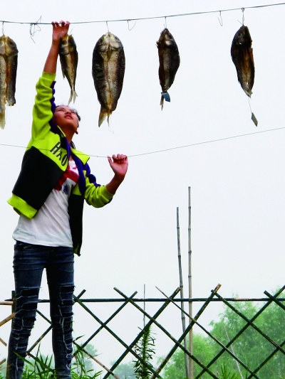 微山湖上晒鱼干