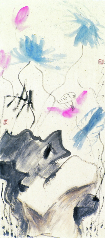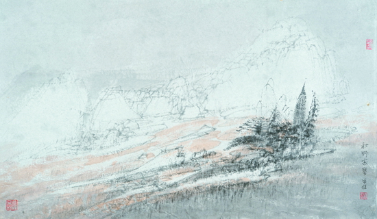费 正:季酉辰先生的作品,有八大山人的笔墨趣味和文人传统,画面舒朗、通灵,比如说《石与梅花》,就画一棵树,画几朵白梅,然后画几块石头,底下还有一些动物,往细里看却有很多文章可以说。另外,他的《石与荷花》,很容易让我想起八大山人的荷花,非常通灵。画上的题字也别有味道,跟他画的草一样,不细看看不出来。还有一幅画是意临黄公望的《九峰雪霁图》,他不管原来的画是什么结构,他画出来便表达了他自家的意思。我觉得他有自己意念,特具笔墨趣味和文人传统,跟其他人的国画很不一样。