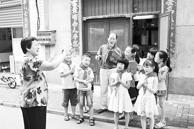 红领巾鲜艳,童声嘹亮。7月15日,湖南省炎陵县城,75岁的县文化馆退休干部尹秉华正在教小学生唱红歌。