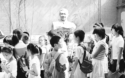 7月17日,北京什刹海社区的工作人员组织本社区的中小学生参观戏曲表演大师梅兰芳故居。该社区针对部分父母上班、暑假的学生无人看管的实际情况,安排专人照顾这些中小学生,组织他们开展娱乐活动,受到家长们的好评。本报记者 郭俊锋摄