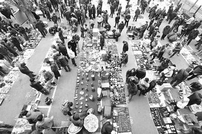 古玩艺术品要进入金融市场,离不开第三方的鉴定。图为山东某地古玩市场。CFP