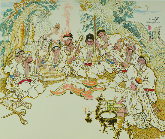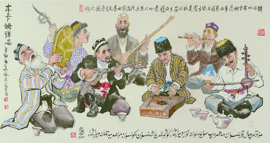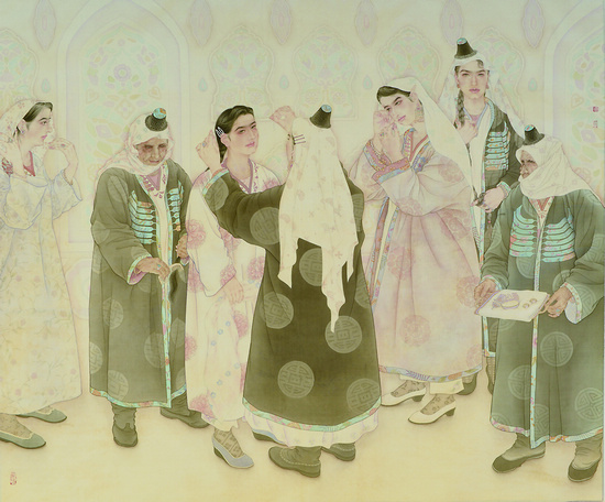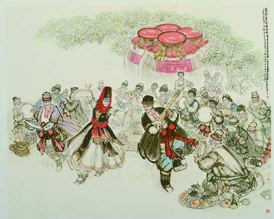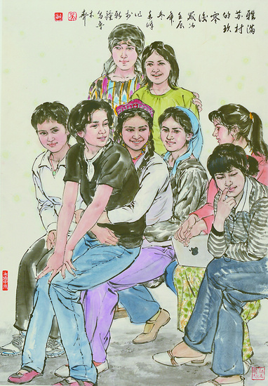 此展由新疆维吾尔自治区党委宣传部、中国美术馆、新疆文联共同主办,共展出新疆老中青多位画家作品91幅,作品在题材内容和技法形式方面,以新视角融入新疆特有的人文历史、自然地理以及经济文化发展的时代特征。中国美术馆为支持此次展览,特意将馆藏的黄胄等知名画家创作的10幅新疆题材中国画借出一并展览。本版作品选自此次展览。 ——编 者