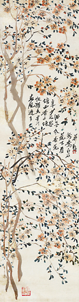 “醉墨——近现代书画一”承续以往,囊括了齐白石、潘天寿、张大千、何海霞、钱松喦等一线大家作品。齐白石变法之前力作《杏花花下》是所谓“密不透风疏能走马”画论的完美诠释,由齐氏晚年一位密友珍藏数十载,颇为罕见。潘天寿的《冷香黄菊》则出版于潘公凯主编的《潘天寿画集》,为赠韫华之作,亦难得一见。