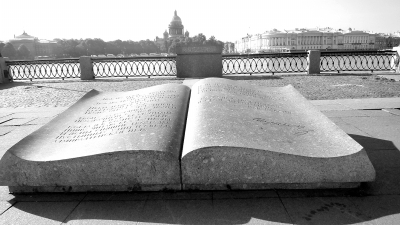 图为涅瓦河畔的普希金诗碑。柏桦摄