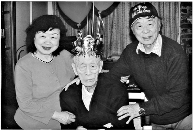 纪弦百岁生日留影(右为纪弦长子路学恂,左为路学恂夫人李剑年)。 于奎潮 供图