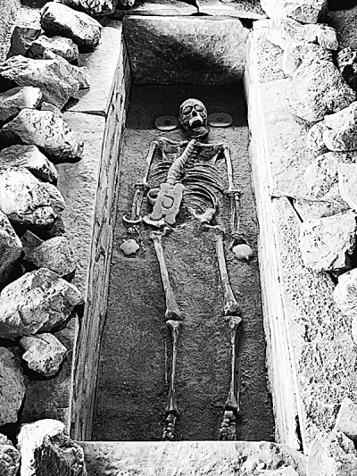 据专家统计,在目前发现的牛河梁墓葬中,挖掘出土的尸骨近百具,在第二地点、第五地点、第十六地点均有中心大墓。最吸引眼球的是第五地点中心大墓的这具老人遗骨。