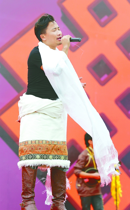 藏族组合“尼玛乐队”成员演唱《生命站立成树》