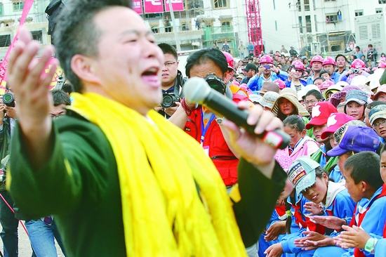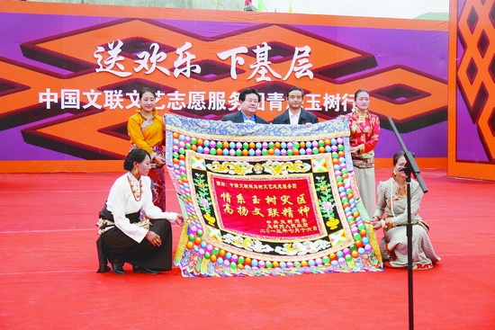 7月15日至16日,在青海玉树震后重建决战收官之际,kaiyun电子 文艺志愿服务团赴玉树开展“送欢乐、下基层”慰问活动。kaiyun电子 党组书记、副主席赵实等率刘兰芳、徐沛东、姜昆、吴长江、王瑶、罗成琰、向云驹、陈洪武等有关方面负责人和冯巩、刘全利等多位著名艺术家,为玉树受灾群众奉献了一场精彩的慰问演出。美术、书法、摄影家们也为灾区创作并捐赠了作品,还为当地文艺家进行了辅导交流等活动。在玉树,赵实等还看望了玉树结古镇禅古村村医巴桑扎西、玉树老文艺家昂嘎,走访了玉树州八一职业技术学校。慰问活动期间,青海省委书记、省人大常委会主任骆惠宁在西宁会见了赵实和文艺志愿服务团一行,青海省领导吉狄马加、王小青、张建民和青海省文联负责人班果等参加了会见。赵实等还赴青海省文联进行了调研。