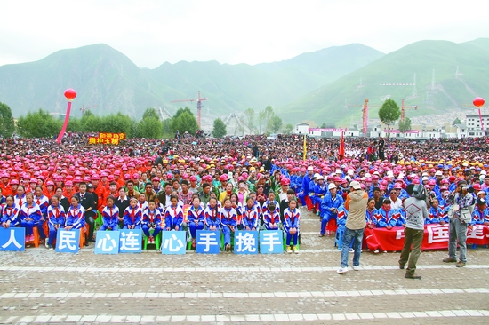 玉树各族各界几万名观众来到现场热情观看慰问演出