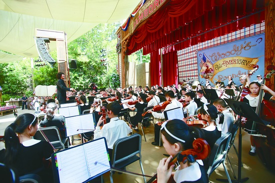 在我国中小学形形色色的艺术团队中,有一支被音乐界亲切称为“小金帆”的交响乐团——北京市海淀区中关村二小金帆交响乐团,它是北京冠以“金帆”的艺术社团中唯一的一支小学生金帆乐团,也是国内唯一一支全部由小学生组成的交响乐团。近些年每逢暑假,“小金帆”即会应邀赴欧美等国参加各种艺术节和比赛。今年7月21日至28日,“小金帆”赴美展开“乐梦·美之旅”音乐交流系列活动。“小金帆”的孩子们参加艺术节、上大师课、义演,凝聚着汗水和少年智慧的动人旋律洒落在大洋彼岸的大学校园、音乐厅、教堂、敬老院、迪斯尼乐园等场所,一个个小小演奏家品尝到了成功的喜悦和音乐带给他们的巨大幸福和荣光。