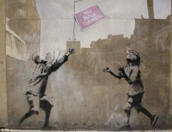 上个月,在伦敦北部被盗的班克斯涂鸦上拍。尽管此次销售颇具争议,但它还是以75万英镑售出。时隔一个月,另一幅从伦敦北部被扯下来的涂鸦又将登上拍场。这幅涂鸦名叫《无球游戏》是从托特纳姆格林的商店外墙上被移走的,它将于明年拍卖,而主持拍卖的依旧是Sincura集团——曾在5月安排《被奴役的童工》上拍的公司。