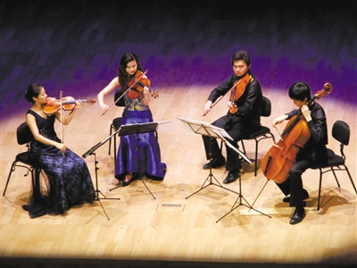琥珀四重奏演出现场。从左到右依次为宁方亮、苏雅菁、戚望、杨一晨。 受访者供图