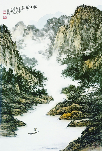 秋江归舟(水墨) 耿继斌