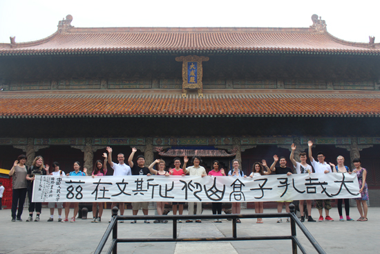为了使国际学生更深刻地了解中国文化,了解中国书法家的创作模式。课堂教学结束后,中国人民大学艺术学院教授郑晓华率师生一行22人,赴山东曲阜及泰山采风,开始了为期4天的“拜山之旅”。