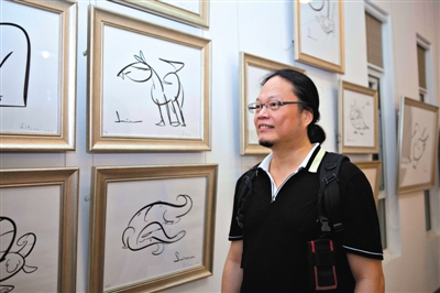 本次展览展出的作品,是漫画家萧言中首次用电脑创作的,线条和造型都非常简单。