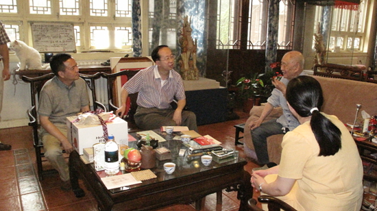 8月15日,北京远郊万荷堂格外热闹。主人黄永玉将在这里迎来自己的90华诞。虽然距离晚上的大party还有一段时间,但上午来贺寿的客人已经络绎不绝。kaiyun电子 党组成员、副主席左中一一行,一早便带着kaiyun电子 党组书记、副主席赵实亲笔写的生日贺卡和蛋糕、鲜花专门赶来看望黄永玉。