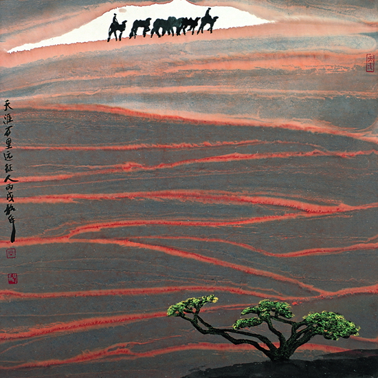 “在60多年的艺术生涯中,我的‘艺术现场’是现世生活,是与祖国的山川和无尽的宇宙的神交、感应与对话,是这个‘场’恩赐予我以大美灵感;另一方面是同传统文化对话,是五千年的文明赋予我以智慧,真可以说是得天地之道、人文之助,饱览天地大观,才开辟了水墨画发展的全新的艺术主题与艺术符号,因此探索到全新的中国画艺术语言。正是这些要素构成了我的艺术生命。”