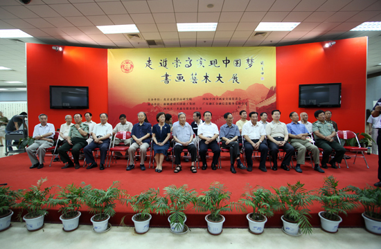 8月16日,由北京走进崇高研究院与国际中国书画家交流促进会共同主办的“走进崇高实现中国梦书画艺术大展”在军事博物馆开幕。中宣部原副部长、文化部代部长贺敬之,总政治部原副主任袁守芳上将,全国妇联副主席汪纪戎,总装备部原副政委崔毅中将,文化部原副部长、国际中国书画家交流促进会会长潘震宙等领导和社会各界知名人士、书画家五百余人出席了开幕式并参观了展览,国际中国书画家交流促进会秘书长张金卫主持了开幕式。