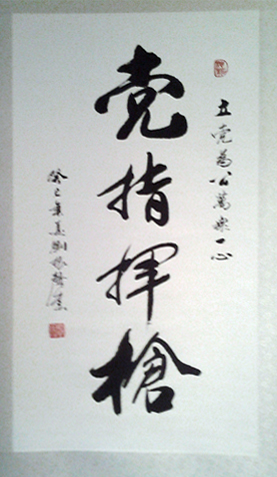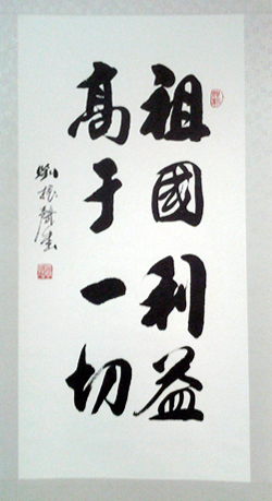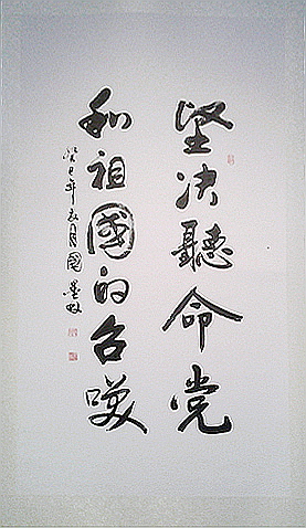 爱国书法展总策划、八路军老战士文工团团长焦歌在开募式上发表了讲话,他说:国共合作期间,于1937年8月,在国民党的一次高级国防会议上宣布八路军正式成立。抗日战争中在中国共产党领导下,八路军、新四军和各族人民英勇抗击倭寇,给侵略者以沉重打击,为抗战的胜利做出了重大贡献。八路军的平型关大捷和百团大战对抗日战争的全面胜利起到了至关重要的作用。今天,世界政治格局变幻莫测,日本右翼势力又在蠢蠢欲动。爱国教育,刻不容缓。八路军老战士文工团策划主办 “当代名家爱国书法展”来纪念中国人民抗日战争暨世界反法西斯战争胜利68周年,就是为了让大家铭记这段历史。每一名中华儿女都要居安思危,时刻准备着,随时听从祖国的召唤,听命党的指挥!为实现伟大的中国梦多做贡献!