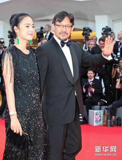 8月28日,在意大利威尼斯,第70届威尼斯电影节主竞赛单元评委姜文(右)和夫人周韵走上电影节开幕式红毯。当日,第70届威尼斯电影节开幕。 新华社记者闫婷摄