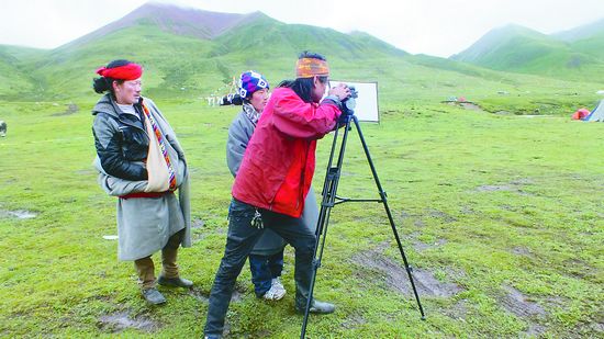 青海果洛藏族聚居区的牧民在练习影像拍摄技术