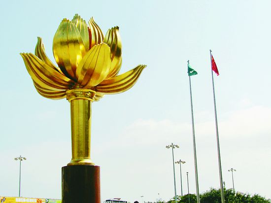 澳门莲花文化登峰造极的标志,当数澳门特别行政区的区旗和区徽。