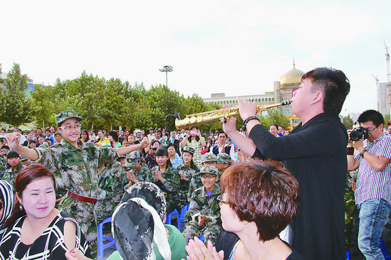 “好看!”“太棒了!”演员们卖力的演出也赢得了观众毫不吝惜的溢美和夸奖。“此次演出是对我们极大的鼓舞,比给我们100万元现金都有意义,比上100场政治教育课都有效”,某驻和武警部队政委王克红对演出给予了高度评价,他说这种精神财富更为宝贵;小战士赵飞不停地鼓掌,他说上一次看演出还是几年前,这次听说首都文艺家要来,他高兴得好几天没睡好觉,“估计晚上又要失眠了,因为节目太精彩,兴奋极了”;14岁的维吾尔族男孩依尔安江看着节目乐坏了,他坐在椅子上跟着动感的节奏不停地晃动着,时而大笑,时而伴着旋律哼唱,“口技小鸟的叫声学得太像了,变脸太神奇了,离我很近,一眨眼就变了副脸孔……”;为支援和田建设来此两年多的曹磊脸上挂满笑容,“看到了来自家乡的演出感觉亲切极了”,他说熟悉而又温暖的乡音更加振奋了他们做好工作的信心;红其拉甫边防口岸哨所的战士小曹很激动,因为他不仅看到了精彩的演出,还从魔术师李学义那里学会了一招魔术,并且得到了一套魔术道具,小曹憨厚地笑着说:“以后可以在休息时给战友们变魔术了,没想到我也成魔术师了”……
