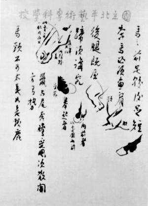 如今他仍致力于观察和研究。国外友人知其所好,给他寄来有关马的画报、影集,让他发现马在跨栏时的特殊动作;看电视赛马节目,旁人看的是激烈的竞争,他却忙不迭按下暂停键,画小稿子,记忆马奔跑时候的运动规律。
