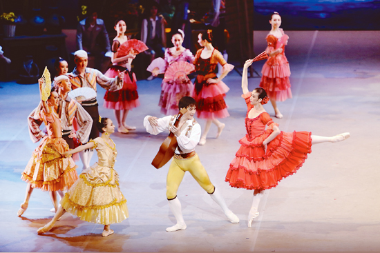 9月11日晚,以热烈荒诞的喜剧风格、恢弘多彩的西班牙风情而著称于世的芭蕾名作《堂·吉诃德》踏着欢快的舞步来到观众的面前。由中芭复排的纽里耶夫版大型三幕古典芭蕾舞剧《堂·吉诃德》在北京天桥剧场惊艳亮相。首演男女主角吉特丽和巴西里奥分别由朱妍和马晓东扮演,在9月12日至15日的4场演出中,张剑、盛世东、曹舒慈、余波等也将倾情演出男女主角。据悉,此次演出也是中芭参与文化部主办的“2013年国家艺术院团演出季”的重头戏。(文\张 悦 图\司廷宏)