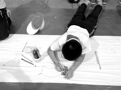 社会科学普及周活动现场,小学生现场画“中国梦”。新京报记者 邓玲玲 摄