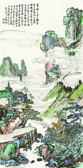 志刚作山水画,初从研习元四家的黄公望水墨山水一路起始,以书入画,又揣摩沈石田中锋用笔作石、王蒙山水构图的营造布势、倪瓒近景的杂树平渚笔致;兼取董其昌疏朗括约的三远图式、大涤子山形笔法的强悍厚实;又吸收了龚贤、石溪的轻罩淡染和水墨烘托铺陈;粗览则众家风格似有若无,细品则都似都不全是,志刚将之糅为一体,但打下了坚实的艺术基本功。继而志刚又取黄宾虹的积墨叠加法、傅抱石的散锋皴染法,以及北派山水技法渴笔勾勒、苍涩而具金石趣味,金陵画派诸前贤用墨用水的温润内敛……逐渐形成了他从继承传统一路走来的纯正源脉,进而从有法到无法的自家颜面。壬辰夏秋之际,志刚随美协一批画家赴瑞士写生,带回一批雪山风景写生习作,因是即时即地对景摹写,其润笔写意、没骨作雪山,用色用墨一反常规,别有一番新意。特别要加说明的是:多年以来,志刚在吴悦石先生的指点下,作画用笔用墨上更见成熟,如新作《云山心境》是也(2013年作);笔法更见方斫霸悍,如近作《远山飞鸿》亦是(2013年作);运墨深沉用重,如《桂林象鼻山写生》等(2013年作)。而癸巳年夏日新创作的一批水墨山水越趋老到、完整、精妙,例如《江村雪夜图》《层林密殿图》《铁骨冰肌香远益清》《云贵山色》《丘壑访贤图》等等。余最喜欢他的《莽莽苍山》,构图结实饱满,近景松影摇曳,中景苍山如铁、劲健浑茫,远景远山寥廓,笔法清俊松灵,大笔挥写,一气呵成,颇具大家气象。款识中,志刚题曰:“莽莽苍苍、横亘天下,信手写来,小豁胸中之气也。”写字作画,用心到此,其胸次、其气局、其意境,自然呈现焉。近日从太行山归来,一批太行写生作品振聋发聩。雄浑奇伟、山势苍莽,笔墨苍辣、乱云飞渡。心明法至,笔到势随。是圆融已成,化境生于胸次。
