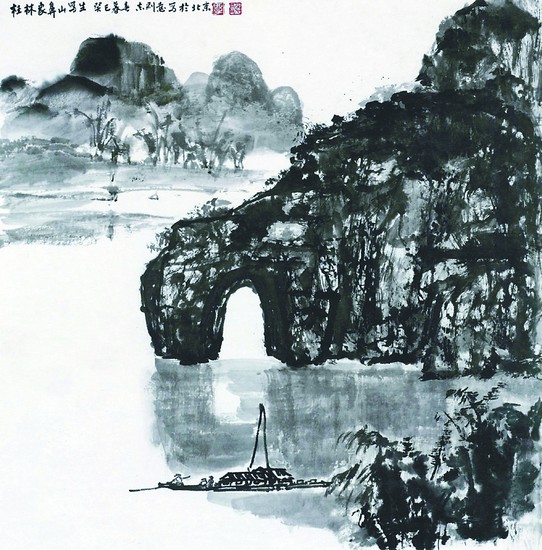 桂林象鼻山写生(纸本墨笔) 覃志刚