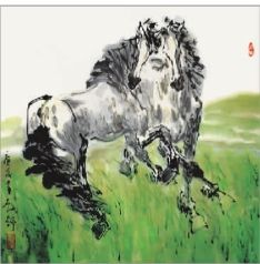 其实,编辑这个版面,十分纠结——刘勃舒、何韵兰两位先生,并不是典型的夫妻共同创作型画家——曾是徐悲鸿关门弟子、如今作为中国美协顾问的刘勃舒,以“勃舒马”扬名画坛,早年作品严谨、工致,并以能够充分抒发性情的草书入画,在绘画语言上有了拓展和发挥。他以马写心,以马言志,笔墨淋漓酣畅,生动洒脱,体现了深厚的艺术造诣和潇洒的艺术个性。除了画马以外,刘勃舒先生其他题材的中国画作品以及书法创作,皆笔墨自由、畅快,显示了他不拘泥于形似的闲适、自在的艺术状态。