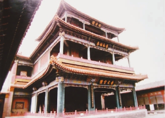 与上述民间戏台相比,宫廷大戏台当然是最为宏伟壮观的了。我到北京故宫宁寿宫和颐和园德和园里两座三层大戏楼去考察,深为其规模宏大、设计巧妙所折服。戏台有20米高,有三层台面供表演,曾经一次演出登台几百人。它的二层三层有天井、一层有地井,供演员乘吊索升降穿梭,表演神魔鬼怪跨越天界人间的内容。其建筑艺术和使用功能堪称古戏台的典范,可惜过去只供皇室享用,隔绝了人世,现在则成为游人观瞻的对象。