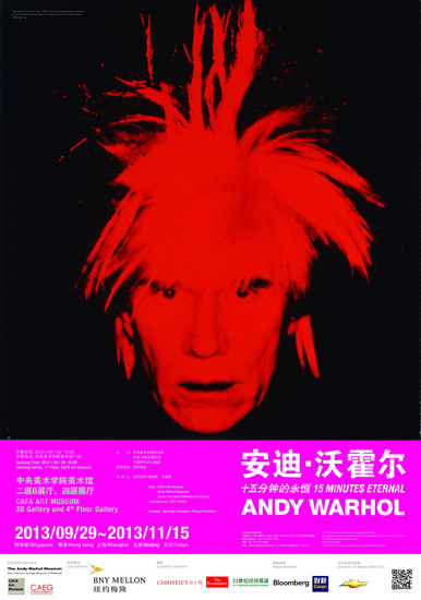 人们喜欢安迪·沃霍尔,因为他成功预见并实践了商业社会中艺术所能发挥的最大功效。诸如每个人都有可能成为明星(选秀节目)、艺术与时尚存在天然的联系(艺术家跨界设计、创办刊物、拍摄MV)等等,当今社会中每天都在发生的种种,安迪·沃霍尔早已成功践行过并被后来者视为榜样。从这点看,安迪·沃霍尔是属于世界的,并以各种不同的方式被各个商业社会形态下的普通人所接受。当然,不能忽略的一点是,安迪·沃霍尔本人及其艺术创作,与批评家、收藏家、艺术机构、大众,甚至是美国政府一起合谋将“安迪·沃霍尔”推向了世界当代艺术的顶峰,并将其塑造成为一个“美国梦”的代表。这不单是成功地将世界艺术中心由巴黎转向纽约,其背后还衍生出一整套消费社会的“造梦逻辑”。在安迪·沃霍尔的家乡匹兹堡有一座7层楼高的安迪·沃霍尔美术馆,它的守护者夏纳馆长通过在此展示数百件和他有关的展品,吸引着全世界的安迪·沃霍尔爱好者来此朝圣。美术馆每年有计划地将他的艺术以学术的方式推向世界。与此同时,安迪·沃霍尔基金会则负责通过运作其生前留下的遗产,以资本的方式实现他的遗愿继续资助艺术与艺术家,就像他生前曾悉心提携过的巴斯基亚、克莱门特、哈林一样。纽约大都会博物馆、古根海姆博物馆等知名艺术机构,则会在每年的不同时段,通过特展的方式,不断阐释和挖掘安迪·沃霍尔之于当今社会、当代艺术的价值。苏富比、佳士得等西方拍卖行更是会在每年的春秋重点拍场上,以显要位置推广安迪·沃霍尔的作品,并使其佳作屡创成交纪录。而分布于世界各地的多个社会群体,如电视台、商业周刊、时尚画报等总会在每年的某个时段,以一种全新方式将他与当下关联起来,在他们看来,谈安迪·沃霍尔永远不会过时。“安迪·沃霍尔”早已成为一个符号,它代表着商业与艺术成功联姻的典范。如果我们留意一下,本次中国展览的赞助者与支持者就会发现,财团才是促成安迪·沃霍尔大批作品得以来华的关键所在,其间伴有商业媒体的大肆鼓吹。纽约梅隆财团代表借用安迪·沃霍尔的话语,表达了“优秀的商业运作同样是一种艺术”。展览公共项目支持者雪佛兰汽车的代表同样在安迪·沃霍尔的创作中找到了与自身品牌的契合点,“艺术从来不是高高在上的,而是应努力融入生活的”。这就是安迪·沃霍尔的魅力所在:即便已然到了信息时代,我们仍可以从其艺术世界中找到某个与当下的关联。作为一个艺术家,安迪·沃霍尔的艺术创作具有敞开性与前瞻性,其试图将艺术与生活边界彻底模糊的种种尝试,如今看来,依然具有鲜活的生命力。
