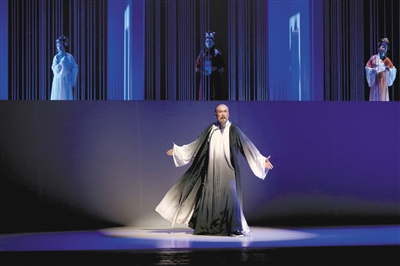 戏剧里的“戏中戏”司空见惯,舞台上的“台中台”却比较新鲜。前晚,在北京曲剧团根据《红楼梦》改编的新编历史大戏《黄叶红楼》的演出现场,记者看到“曹雪芹”在台上表演,而《红楼梦》中的人物则在舞台上搭建起的高台中表演。首轮演出,该剧将在天桥剧场上演至10月18日。