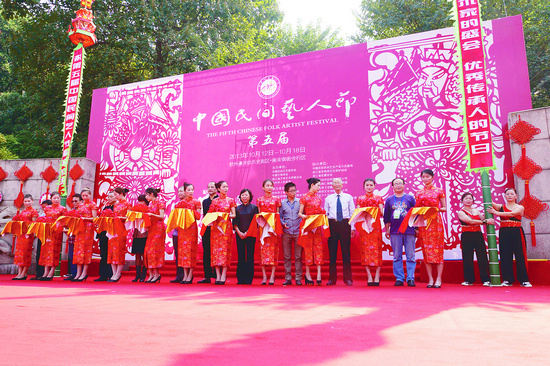往届艺人节评选出的“十佳民间艺人”为开幕式剪彩 莫保平 摄