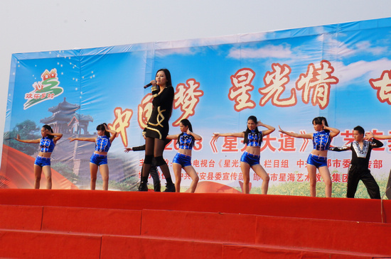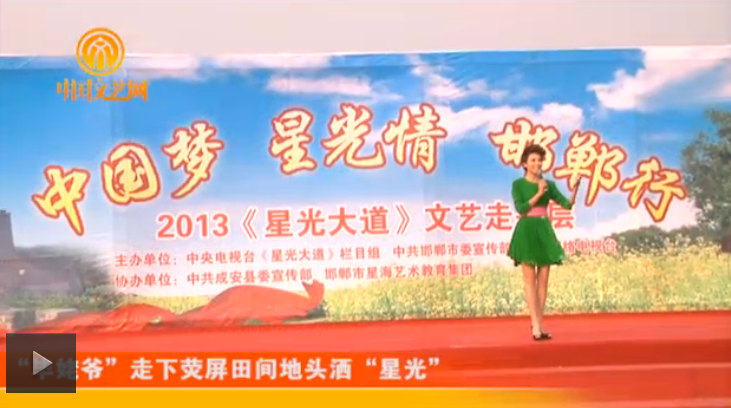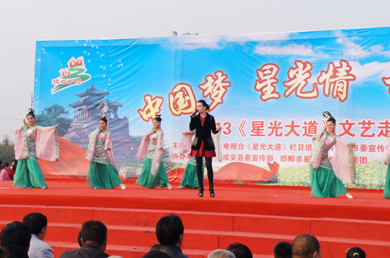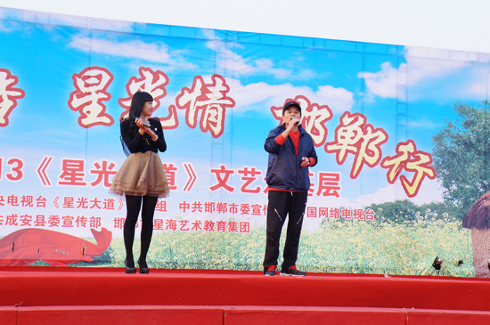 10月17日下午,一场集合了众多央视《星光大道》草根选手、河北省邯郸市成安县的普通农民,由紫檀主持、毕福剑担任嘉宾的文艺演出,在邯郸市成安县道东堡乡西野庄村的田间地头热闹开场,这场反映了《星光大道》百姓情怀的演出,拉开了“中国梦星光情”《星光大道》文艺走基层活动的帷幕,受到当地百姓的热烈欢迎。