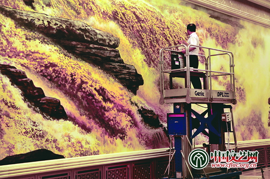 为人民大会堂绘画是非常难的,它是一种综合性工程,是一种环境艺术,必须要根据厅堂环境,根据它的实用功能来决定最后效果。人民大会堂的画,有一些基本要求是必须要遵循的,作品必须要大气,必须要有相当的分量,在其他场合觉得好的作品在这儿很可能就不行,就不符合这种追求,这是非常有难度的艺术创作。所以在人民大会堂里画什么,如何画,要达到何种效果,都是非常重要的。我想王西京这张作品一个非常重要的特征就是能够体现出我们这个时代的气势,体现出我们这个时代的气象和我们这个时代的精神,把黄河这样一个既有历史气势又有现代气派的题材画得这么丰润、一往无前,体现了中华民族的崛起,体现了我们对中国梦的追求,达到了金色大厅的画作所应该达到的艺术效果。