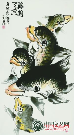 万新厚把鱼画活了。画活了还是容易,最难得的是他把鱼画出了人性、画出了新意。能够画出那么好的画来,这是很了不起的,是很有意义的,这是一个很值得美术界关注的问题。希望他更上一层楼,“跳”到全国去,“跳”到世界去。