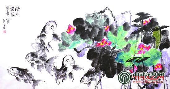 万新厚的画开辟了一条新路,因为历代画家画鱼是单纯的。他的画鱼种类繁多,画的风格很大气,用笔用墨很见功底。他用笔落笔很准,线条的变化很老辣,墨用得很活,很有层次感,整个画的动感、构图都很有美感——从艺术的角度来说,达到了一定的高水平。他的笔墨虽然从传统中来,但是打破了传统;他的创意常有现代生活的那种元素,表现很新颖。