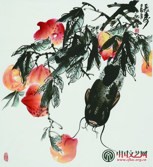 艺术要有长久的生命,必须有突出的个性。我觉得万新厚的鱼有他的个性和特色:他的画跟别人不一样,有他自己的艺术符号,不论从造型、笔墨、构图、意境都有他的独到之处。鱼好像就在我身边,非常活跃,非常鲜活,好像这个鱼游过来一样。我曾经为他题词:万鱼堂,当代中国大写意画鱼第一人。