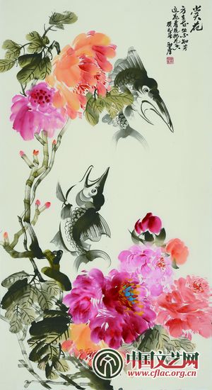 我觉得艺术中没有所谓纯艺术,一定与形式、笔墨和它的内涵、思想境界有关系。所以,我在万新厚画展上感触很深:首先,我十分钦佩这位湘籍画家那么执著地辛勤耕耘,他的画充满着激情,对生活细节的细致观察与体验,他表达的东西,更多的是中国老百姓的美好的愿望,正如我在书中所写“鱼水趣,人间情”,他是借这些鱼、花、鸟、草……来表达感情,我觉得他很成功,他画的很多鱼,是连环画或者是图案画,但他要表达的内容是那么强烈,给人心灵上的一种冲击,能唤起人类对生活、对美好未来的憧憬,对人间感情的关注和珍惜。所以,从艺术形式法则上来讲,他的笔墨是随着情绪、情感在流动,他有很夸张的图案画的表达语言;同时,他的作品又非常具有现代意识的、朦胧的、非常时尚的手法和造型的语言。
