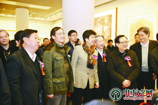 参加上海美术作品进京展开幕式的嘉宾兴致勃勃地参观画展