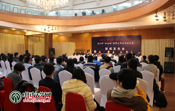 11月22日,由中国艺术教育促进会、世界自然保护联盟、北京怡苑文化艺术促进会主办,北京金台艺术馆承办的2014年“金台杯”世界大学生书法大赛新闻发布会在京举行。