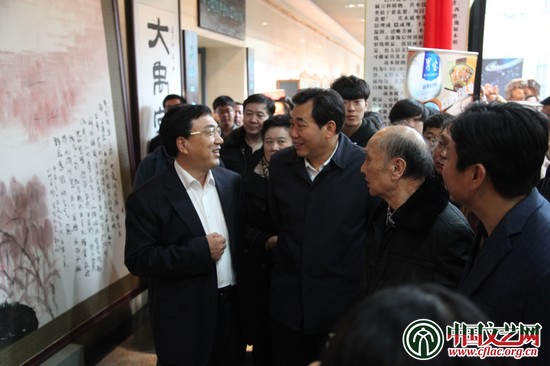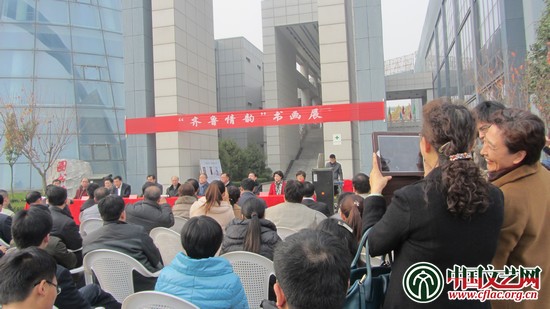 11月23日,“齐鲁情韵”书画展在山东高密文体公园举行。图为开幕式现场。伊红梅摄
