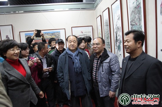 11月23日,“齐鲁情韵”书画展在山东省高密市文体公园举办。 著名作家、中国作协副主席莫言,山东省将军书画院院长刘国福,潍坊市委书记、市人大常委会主任杜昌文,潍坊市政协副主席吴建民,中国书画学会副主席刘远景,以及高密市委书记范福生、市委副书记万丽等300余人出席开展仪式。本次书画展由高密市委宣传部、市文广新局、市质监局共同举办,高密市文化馆、鸿源生物科技有限公司承办,共展出了王裕晏、刘国福、董凤基、宇培杲、刘远景、李华春等六位艺术家书画精品140余幅。