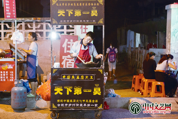 官亭路的老木来自亳州,早先在供销社上班。下岗后,为了使孩子能够有个好的教育环境,几年前举家迁往合肥,交了赞助费借读在官亭路附近的一所小学。老木在官亭路的营生是做臭豆腐,他不大的摊位有个响亮的招牌:天下第一臭。老木说,过几天的臭豆腐会更好吃,前天才从老家回来,卤水还是新的,卤水越陈,臭豆腐会越有味道。